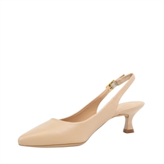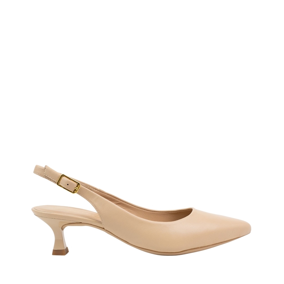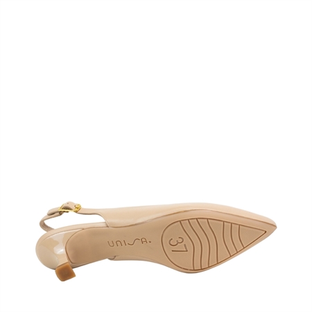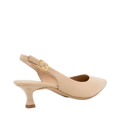 Shoe slingback made of leather. Slim heel 5cm lacquered tone on tone. Adjustable on the ankle with metal buckle. Light, flexible and non-slip rubber sole. A classic style that fits a casual chic outfit or an elegant outfit.