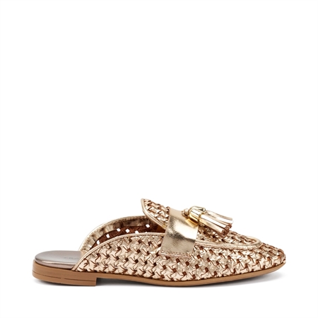 Quick view Sabot woman Frau in woven... €139.00 Elegant flat sabot in woven leather with gold finish, perfect to add a touch of light to your look. Crafted in Italy, it combines style and comfort...