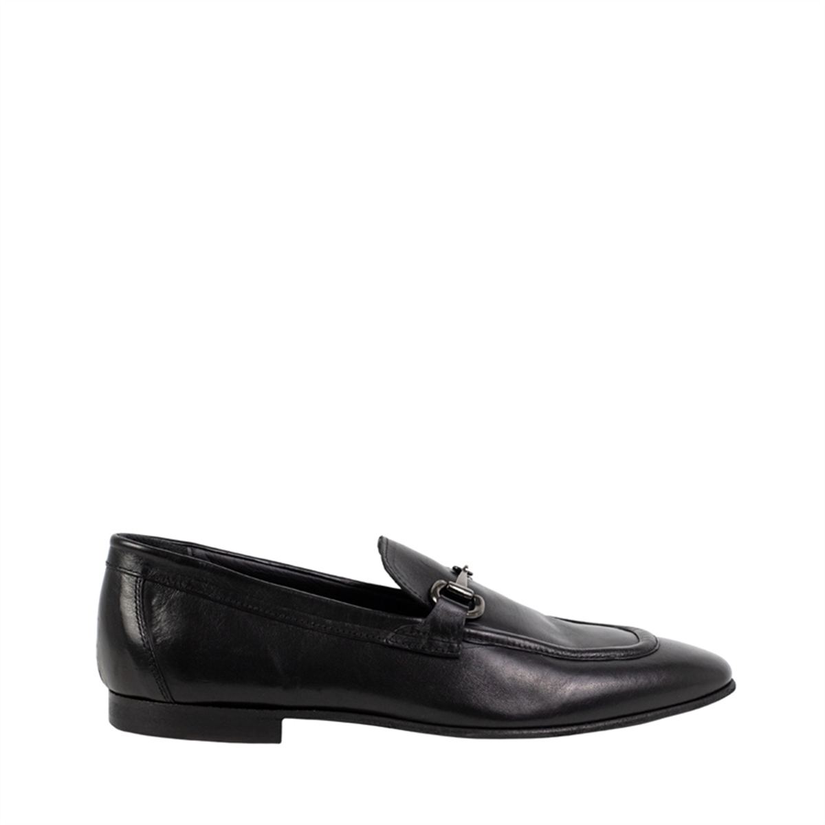 Men's Moccasin Pawelk's in soft black leather with clamp on the upper, real leather bottom