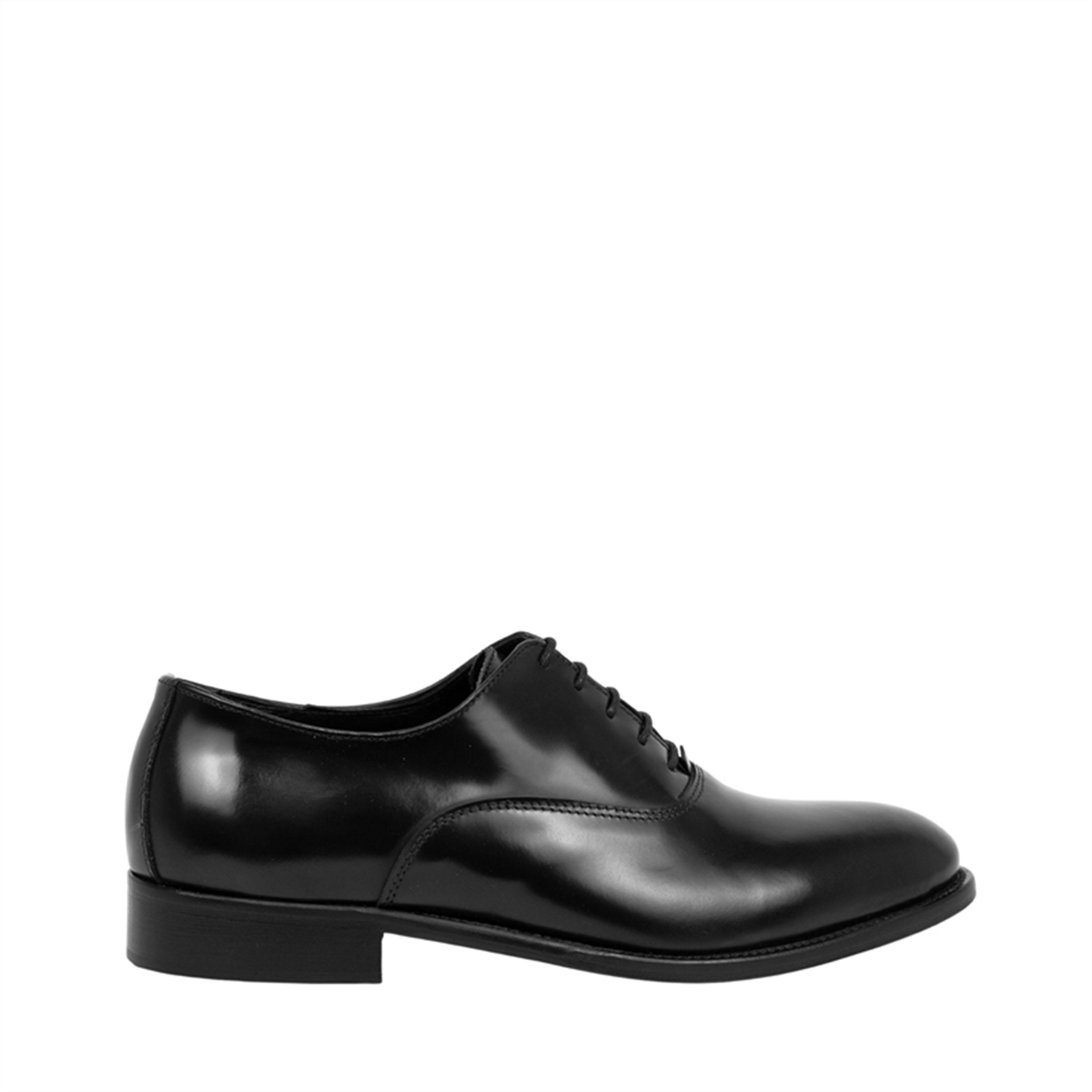 This man's oxford is a true expression of Italian style and high quality craftsmanship. The leather sole with fine black processing (double stitching) gives it robustness, while the leather lining and the upholstered leather insole give it comfort and breathability.