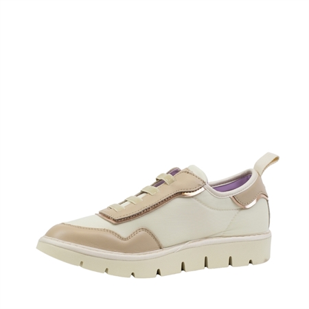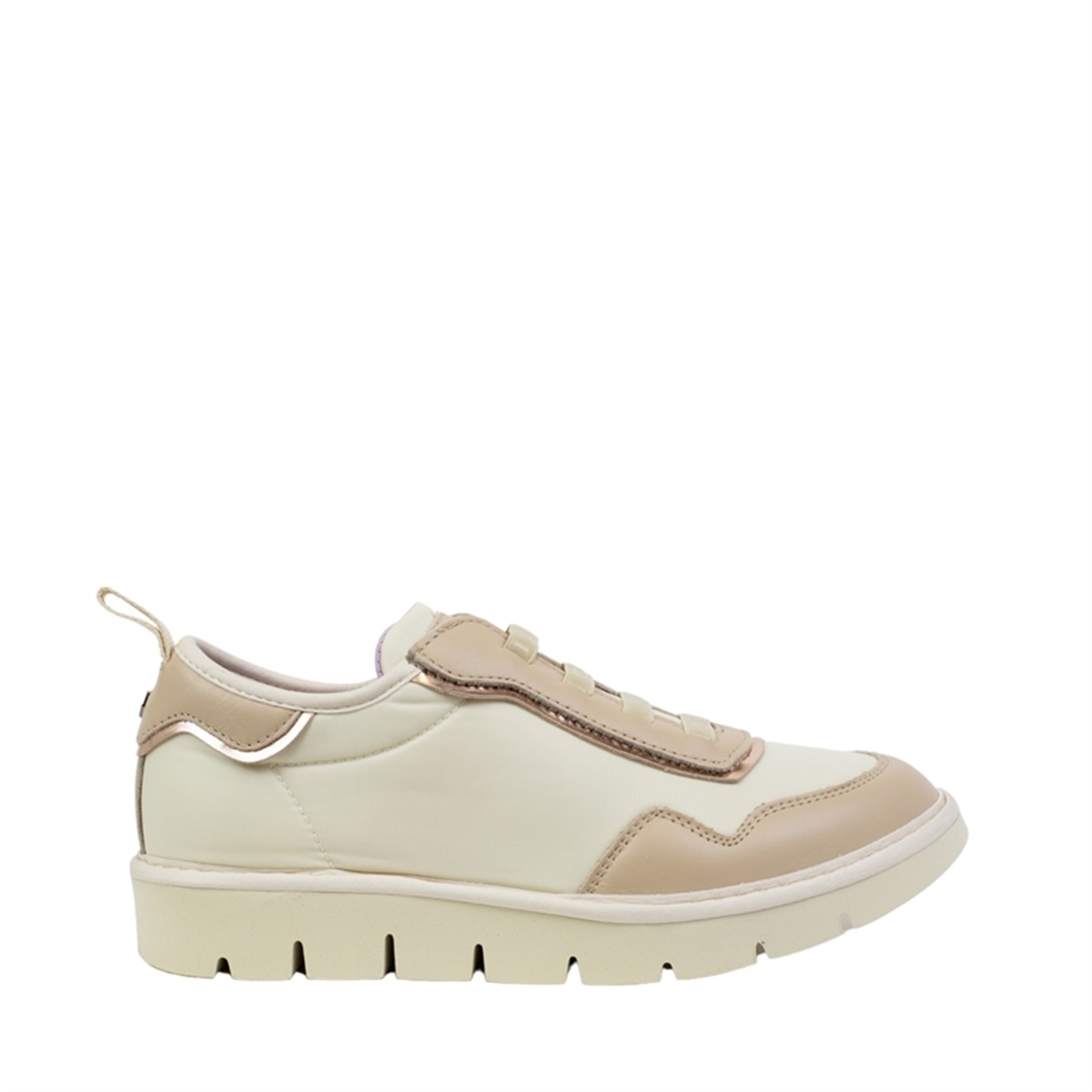 Women's brief shoe P01 Panchic in nylon and leather beige color and pink gold profiles