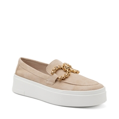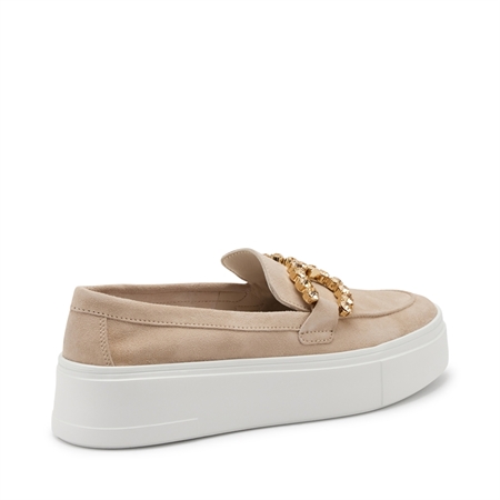 Slip on woman Frau soft suede ecrù with rhinestone accessory
