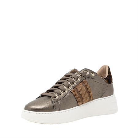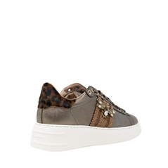 Women's sneaker Stokton in bronze laminated leather, peter detail and libellula jewel accessory on the side band - [887B